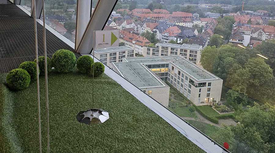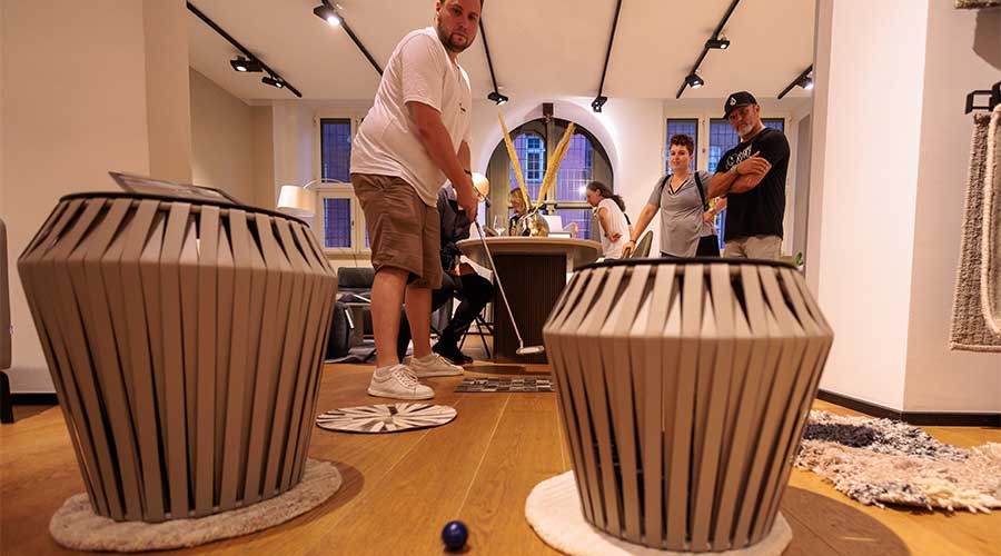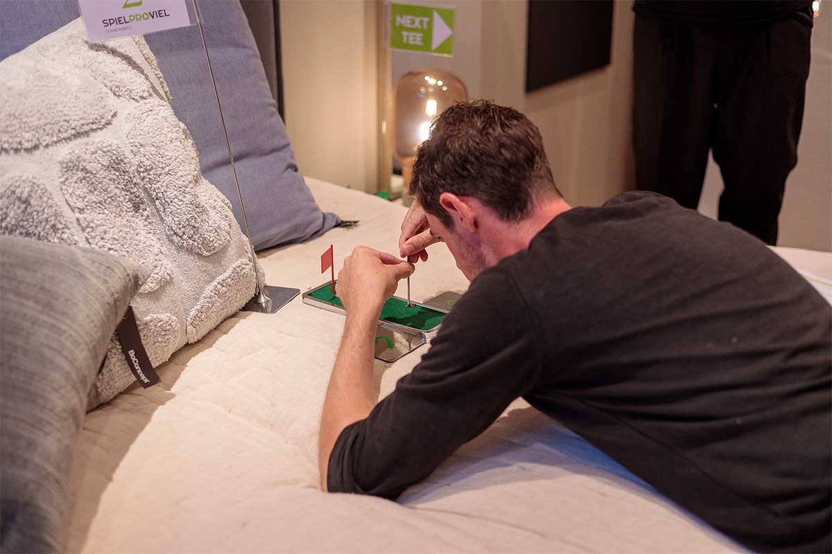 Büros, Flure, Besprechungsräume oder Ausstellungshallen werden als Golfbahnen inszeniert. Das sorgt für Staunen und viele Aha-Momente.
